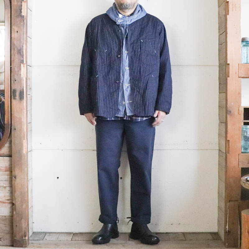 こちらは生地違いの、ネイビーのメガリップストップ地を使用したモデル。
