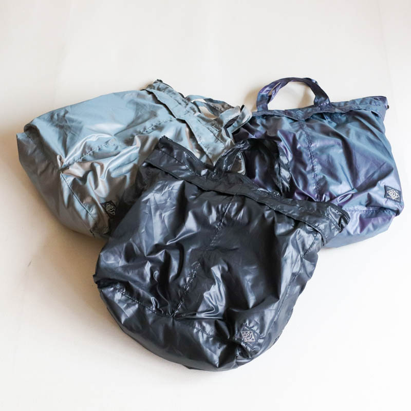 非常に軽い仕上がりで、内側についたパッカブル袋にスピーディーに収納でき小さく収まりますので、ポケットやカバンの隅に忍ばせて買い物などをしたときに広げて使えます。