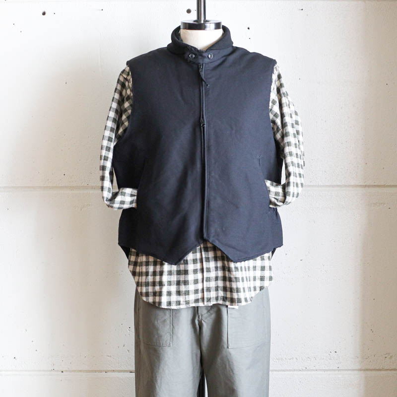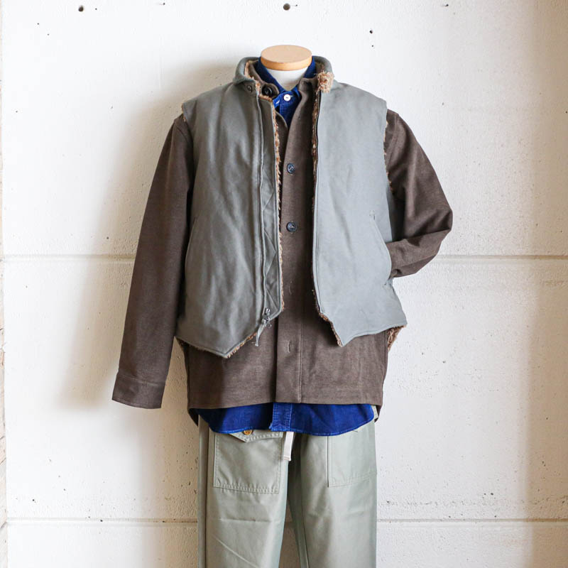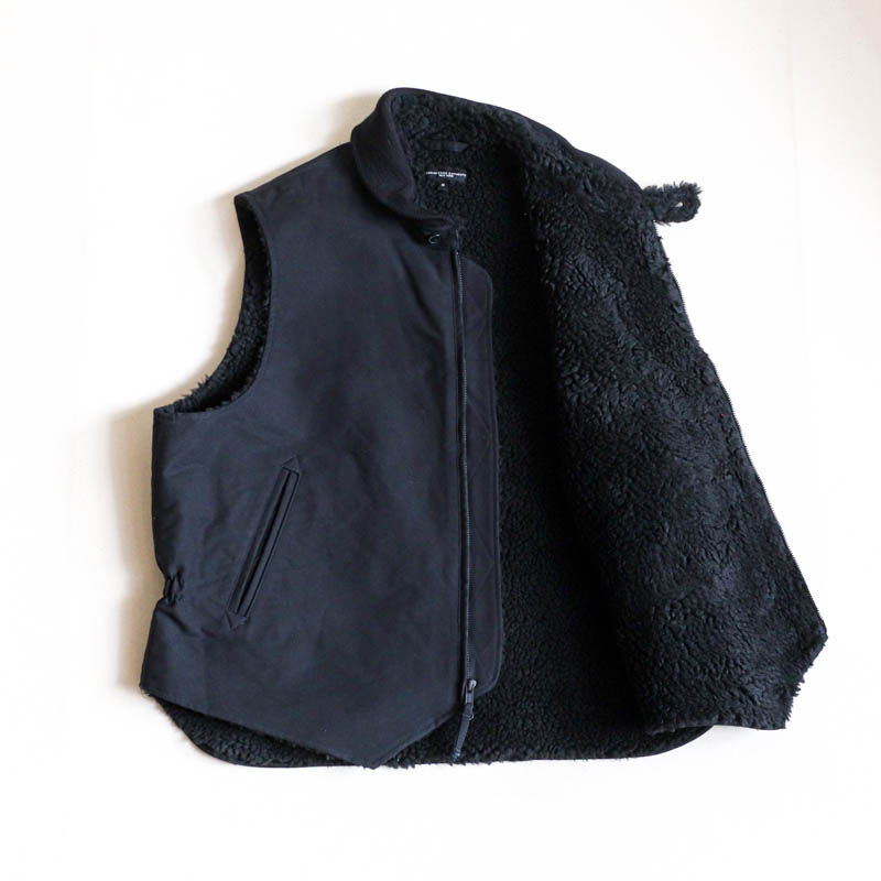 余計なディテールを削ぎ落としたシンプルなデザインで、フライトジャケットを思わせる特徴的なベスト。