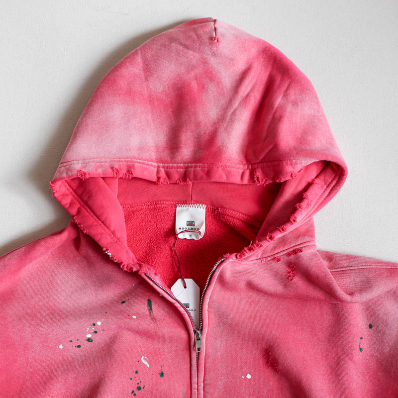 こちらのジップアップフーディーは、20ozのアメリカで生産された柔らかいスェット生地が使われておます。
