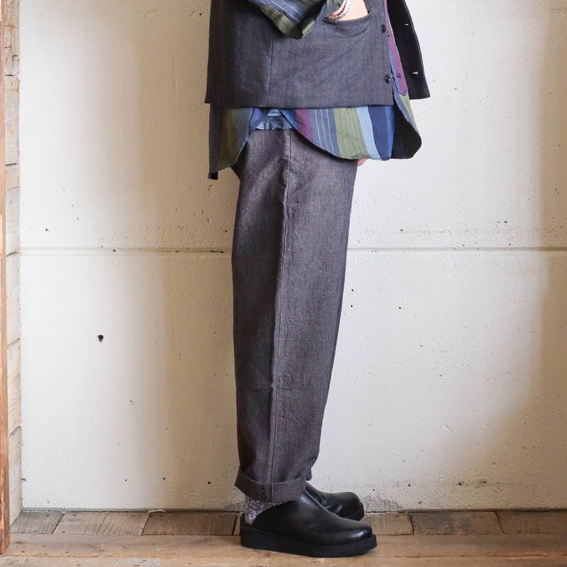 太過ぎず綺麗に裾にかけてテーパードするこのパンツは、トップスを選ぶことなく色々な着こなしを楽しんで頂けると思います。