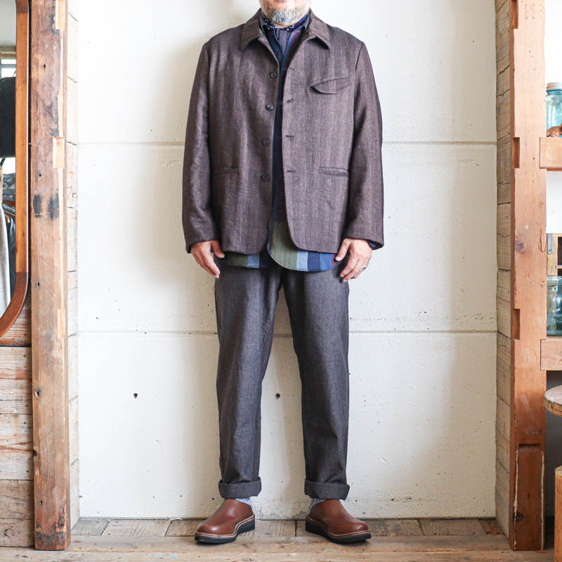 こちらのARTISジャケットは、ユニークなデザインの胸ポケットやカバーオールみたいな見た目が特徴的で、ラフにやや大きめにガバッと着こなしても、ジャストサイズで着て頂いてもさまになるジャケットです。