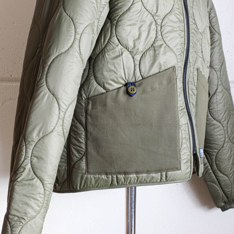 軽く薄い仕様ですので、邪魔にならずにアウターの下やシャツジャケットの下などにサラッと入れてもらえばウールの中綿が優しい暖かさを発揮してくれるキルティング仕様のジャケットです。