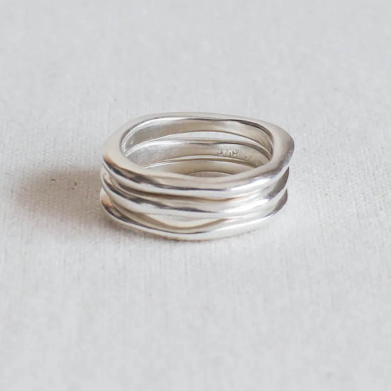 こちらのリングは、1本でも、2本でも、3本でもまとめて付けても頂ける特徴的なリングです。