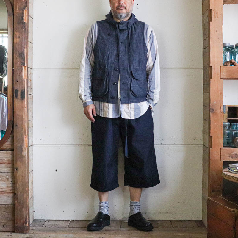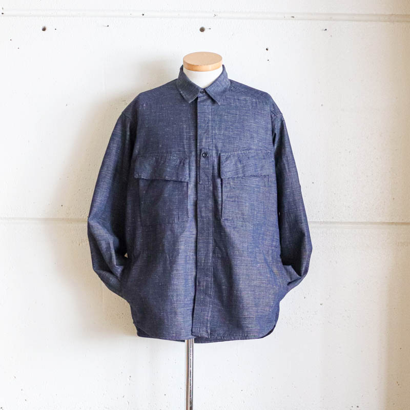 素材には、コットンとヘンプを混紡したリップストップ地が使われており、クラッシックなミリタリーリップストップ生地が再現されています。ヘンプが混ぜられていますのでシャリっとしたドライな質感です。