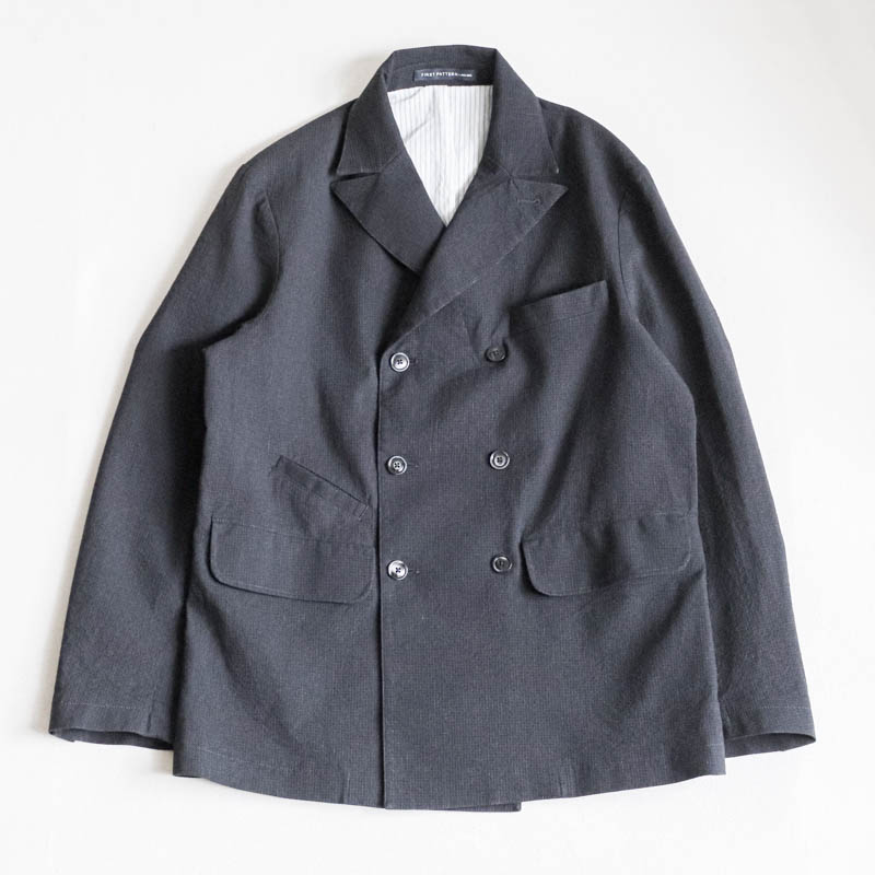 Manufactジャケットは、ダブルブレストブレザーの概念を再定義し、クラシックなテーラリングの堅苦しさを脱ぎ捨てたモダンな解釈を提供します。その結果、ややリラックスしたシルエットが生まれディテイルの本質を最も純粋な形で体現しています。