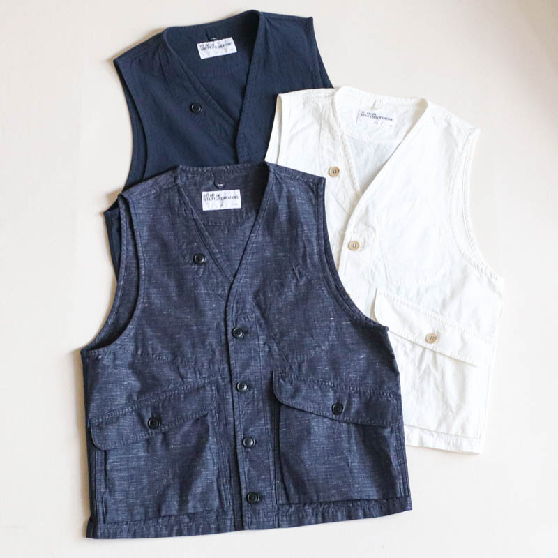 素材には、イタリアのロンバルディア地方で生産されたスラブキャンバス地が使われ、コットンとリネンをブレンドし、凹凸感が特徴的でドライな質感に仕上がっています。